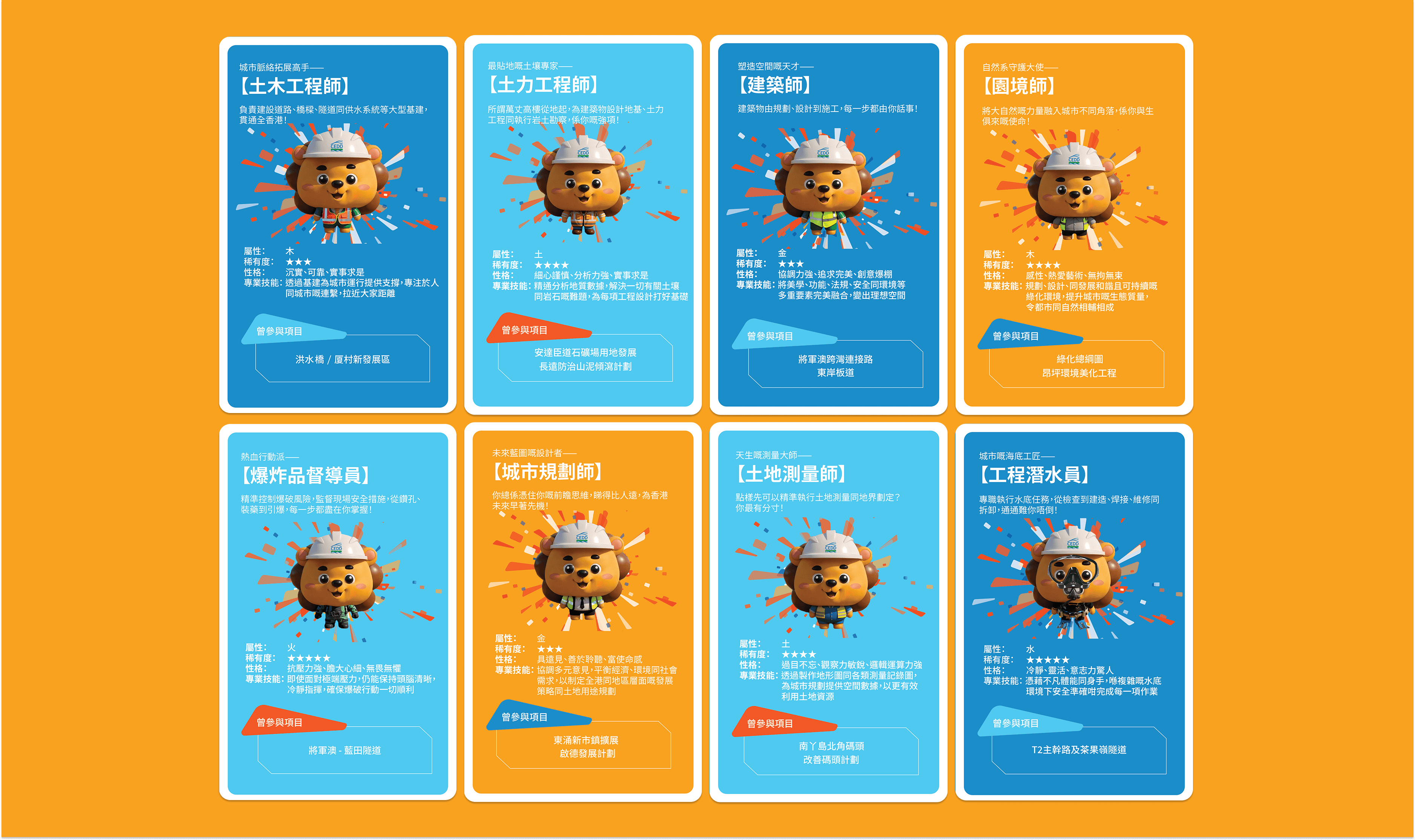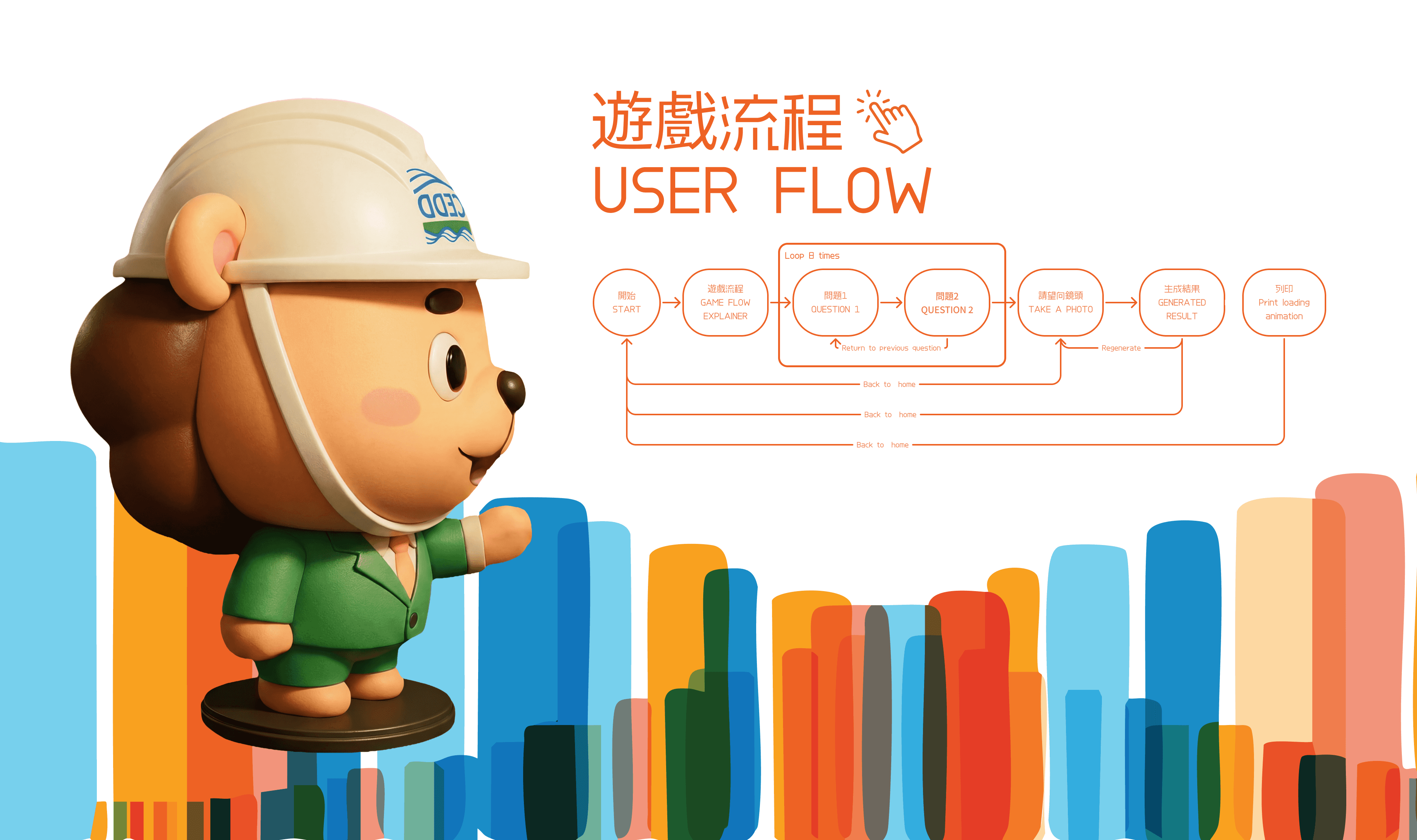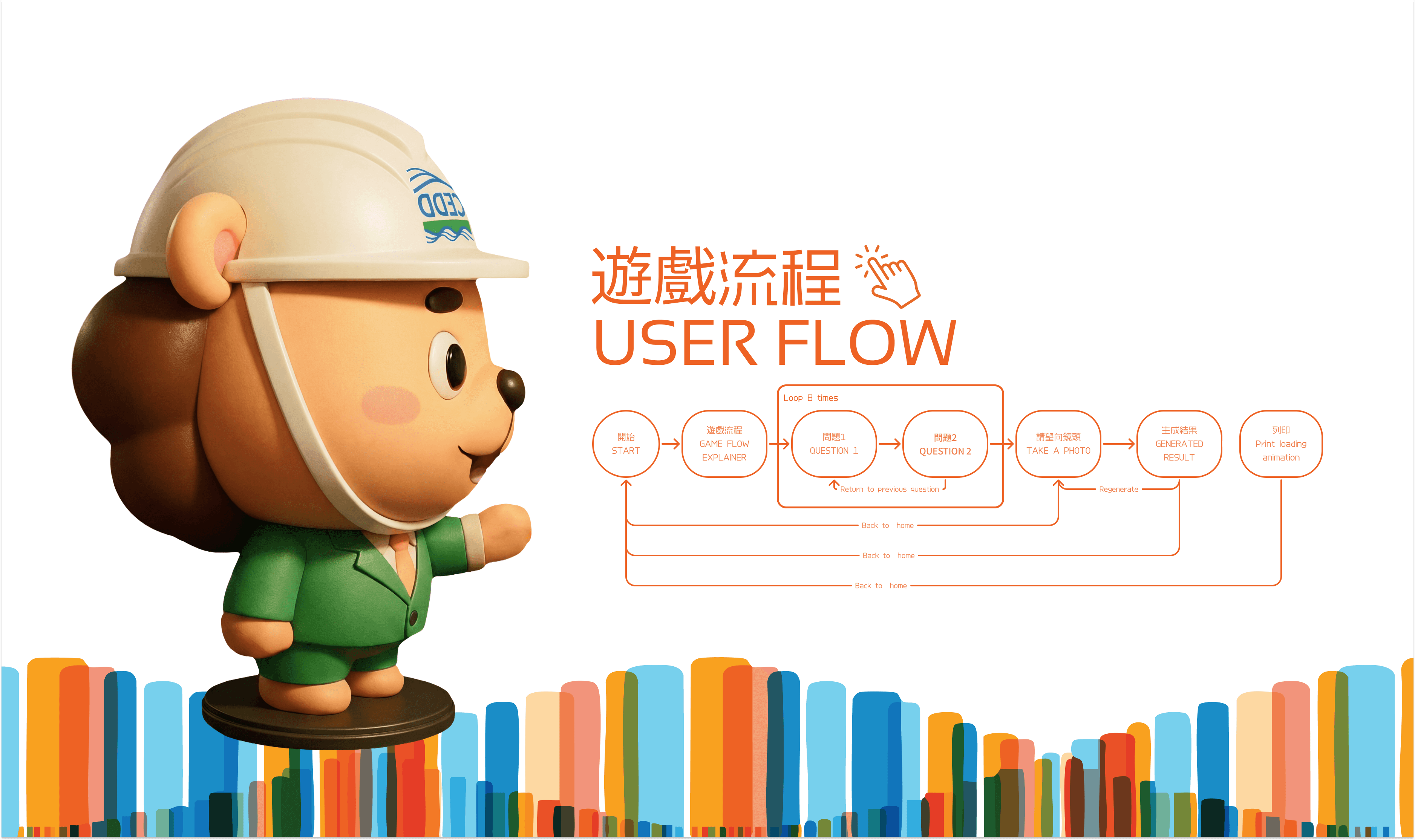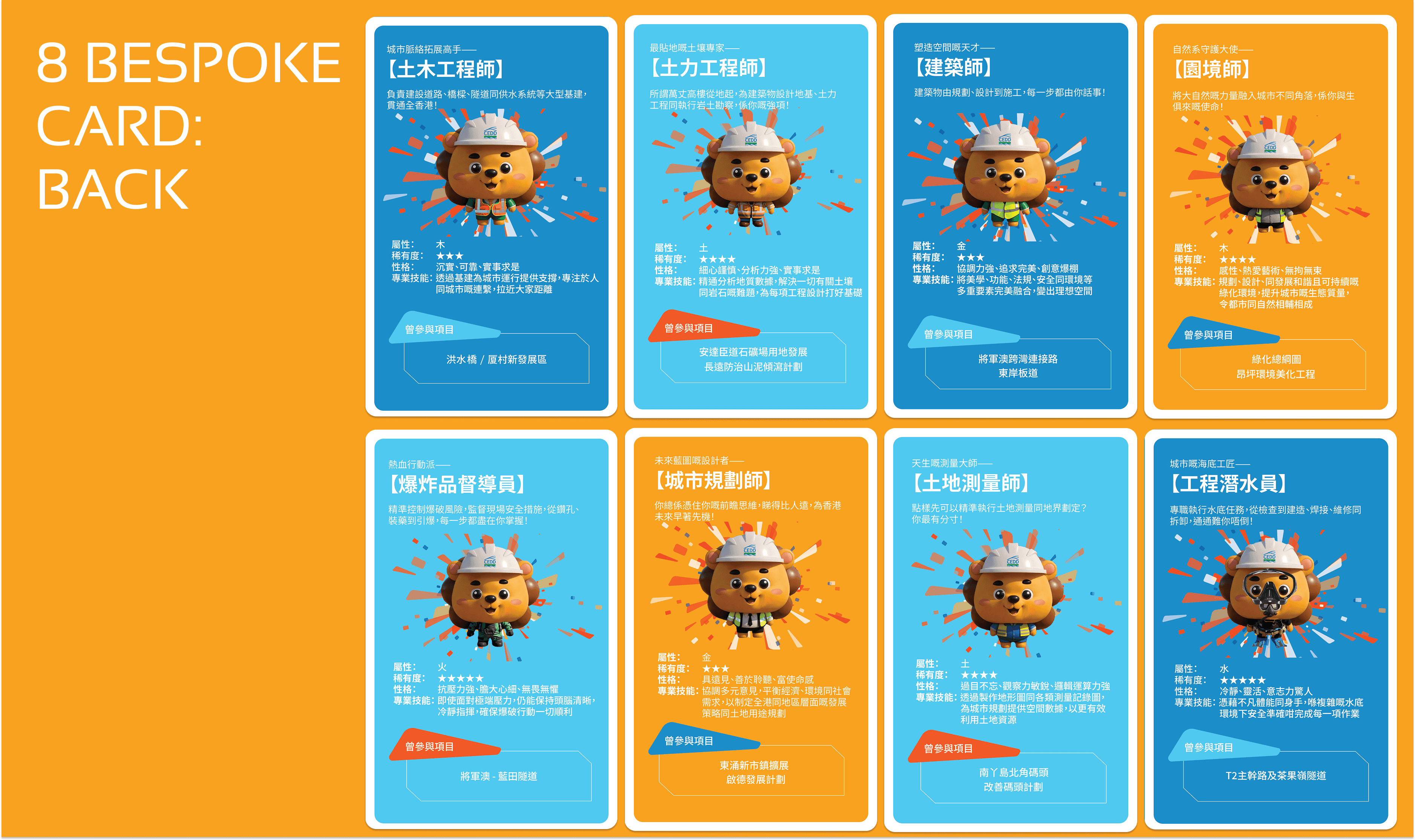 The Civil Engineering Development Department (CEDD) needed to engage visitors to their new multimedia space in Hung Sui Kiu to discover potential career paths within the department. As the UX/UI designer and creative, I designed a simple and self-explanatory interface with playful, approachable designs aligning with HSK visual identity. The kiosk needed to work seamlessly for diverse audiences across all ages and tech literacy levels, delivering quick and impactful engagement without staff supervision.