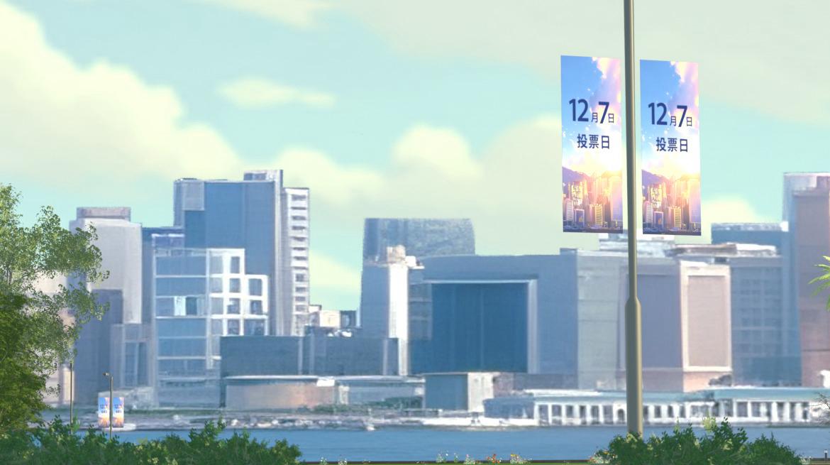 Collaborating with art directors and the creative team, my team developed style frames for Hong Kong's iconic locations to complement the government's ballot box mascots and live-action dancers. We established a painterly and low ply game aesthetic across Victoria Harbour and five additional landmarks through simplified architectural elements, layered compositions, and consistent lighting and color palette. Working with creative directors, production teams, and client stakeholders, I contributed to a multi-platform design system ensuring visual consistency across TV, digital displays, and print applications including bus wraps, flags, and booth graphics. Through iterative feedback sessions, I provided design specifications and reference materials that enabled the production team to execute the campaign vision consistently across all deliverables.